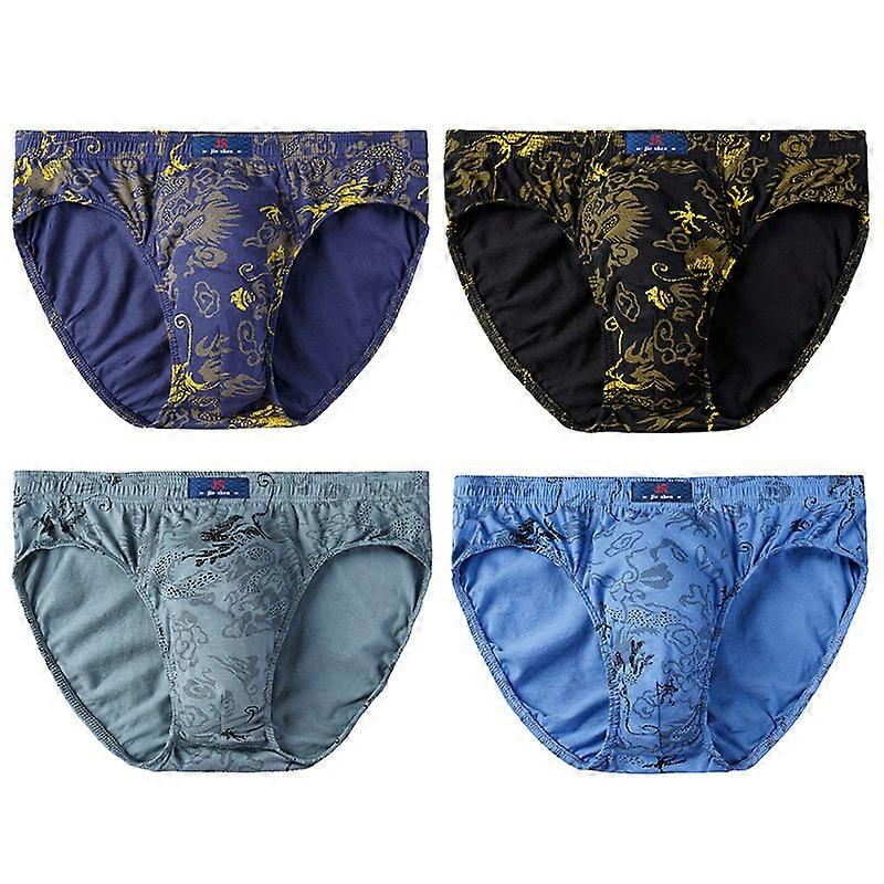 4 Pcs/Lot 100% Cotton Men's Printed Briefs Plue Size Underpants Underwear Loose Lingerie Moisture Absorbent Breathable Panties