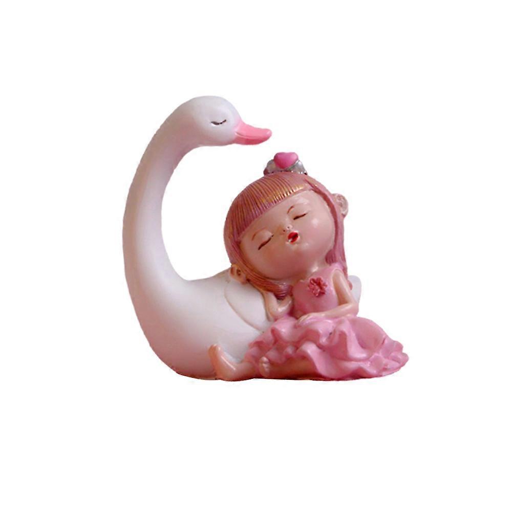 Miniature Swan Girl Baking Ornament for Cake Decor Pink Resin Figure