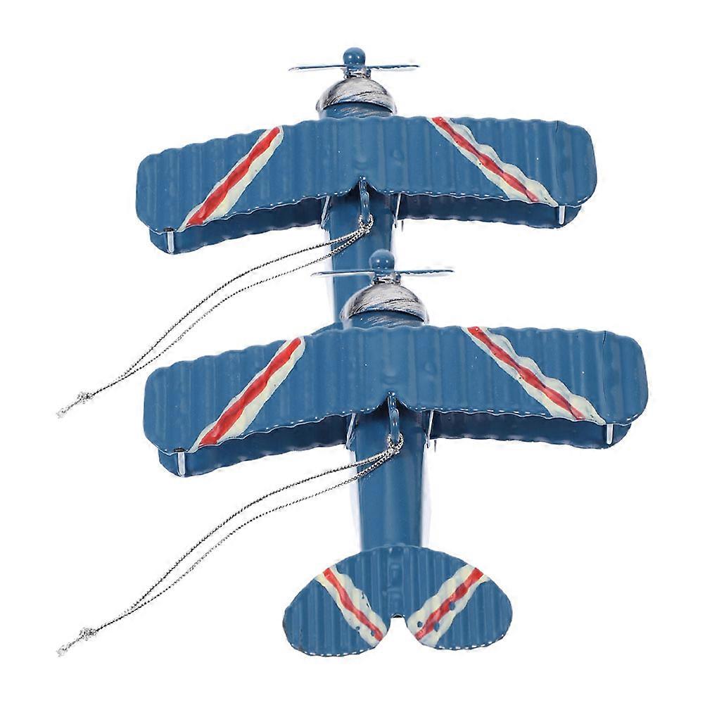 Blue Retro Airplane Model for Decoration 8Pcs Iron Desktop Ornament