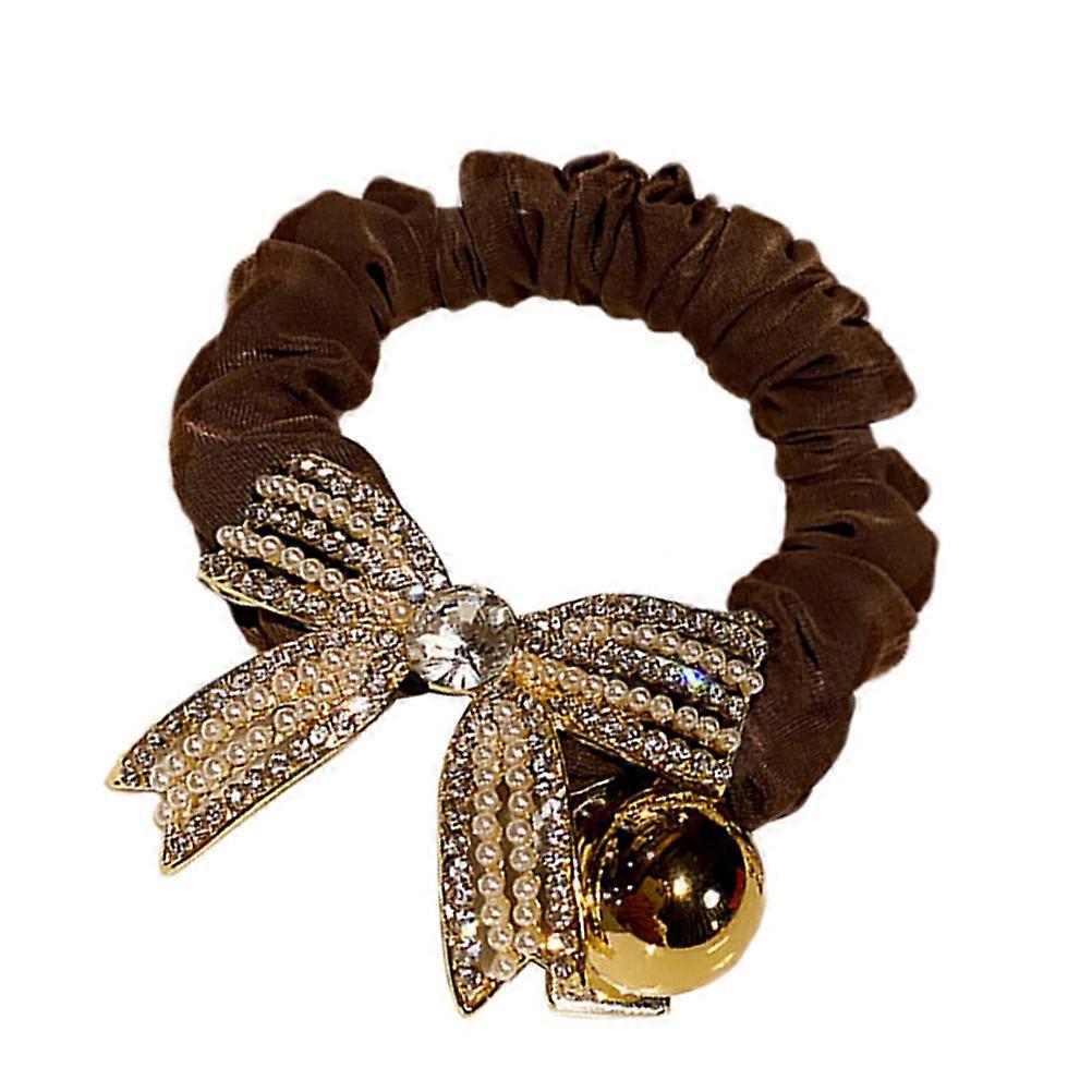 Chic Coffee Bow Hair Tie with Rhinestone for Decor Parties and Daily Wear, Cloth Material, 1pc