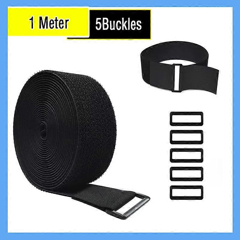 1-5Meters Adjustable Fastening Hook And Loop Straps With Buckles Free Cut Length Cord Straps For Sewing And Cable Wire Manageme