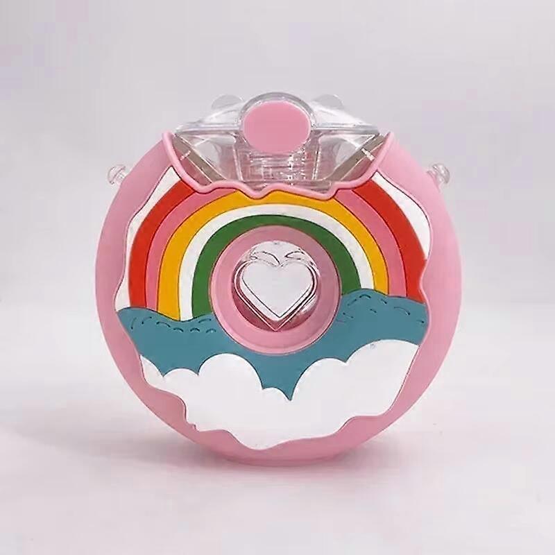 380ML Donut Shape Cup Kids Feeding Cup with Straws Lovely Donuts Shape Water Cups Cartoon Leakproof Outdoor Water Bottle