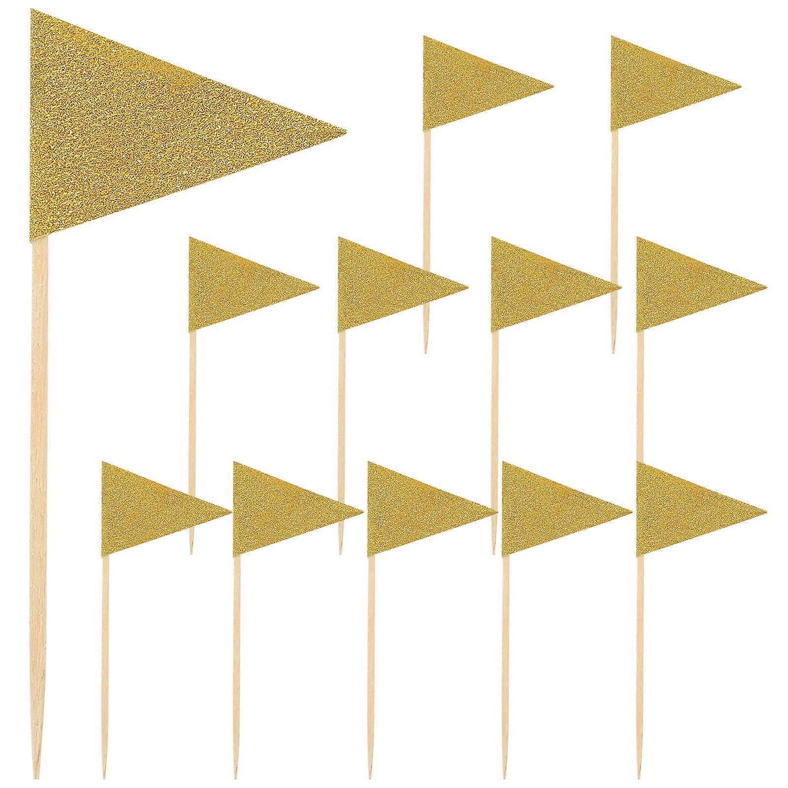 Golden Decorative Food Flag Picks for Cakes and Party Decor 12Pcs Paper Toothpick Sticks