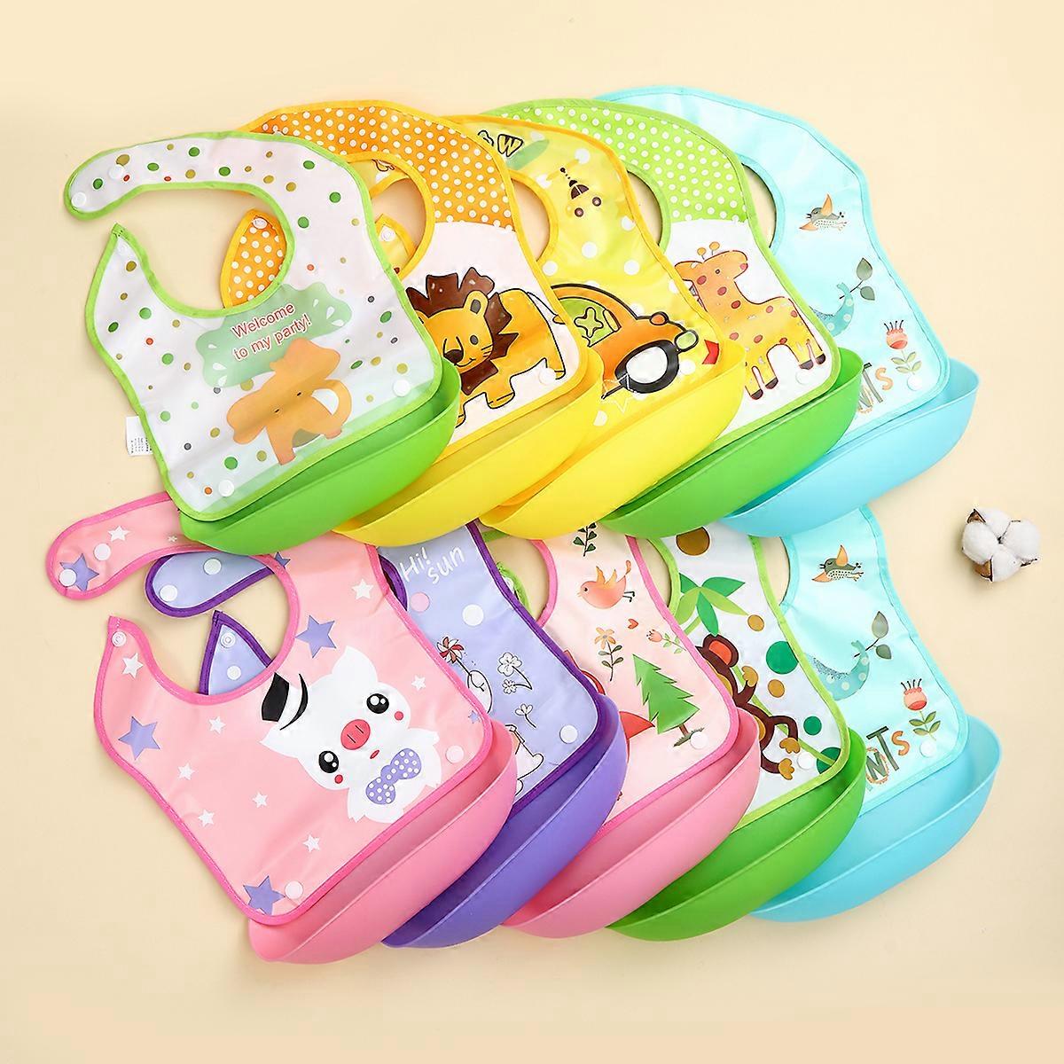 Cartoon EVA bib Infant meal detachable rice pocket Children's no-wash waterproof imitation silicone bib saliva pocket