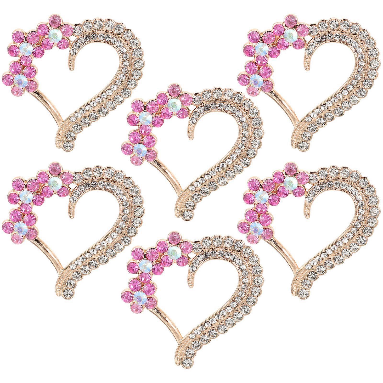 Pink Heart Shaped Alloy Decorations with Rhinestones for Clothing and Handbag Appliques