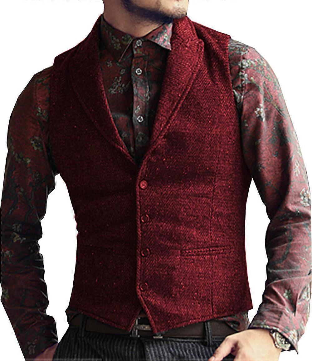Mens Tweed Vest Retro Herringbone Vintage Wool Blend Waistcoat S M Large XL XXL