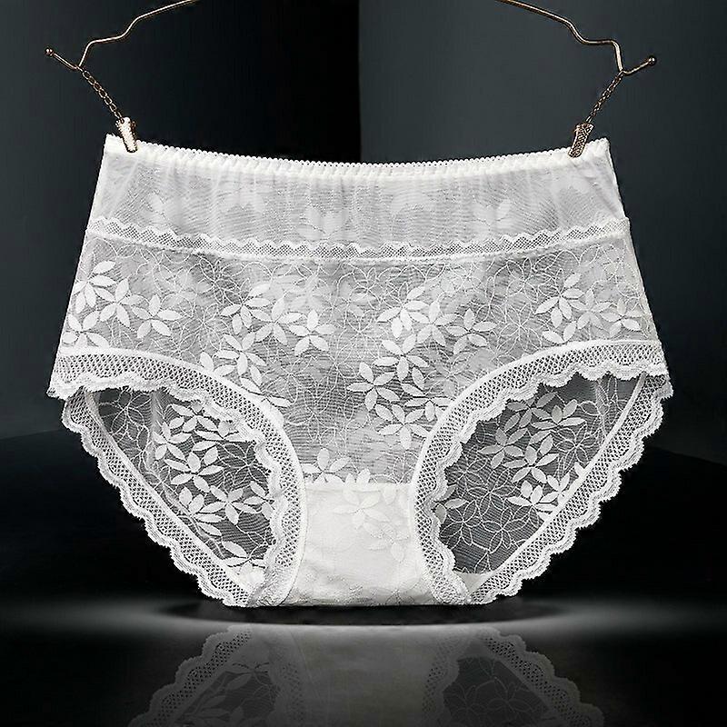 Women Briefs Elastic High Waist Sexy Transparent Lace Panties Underwear PlusSize