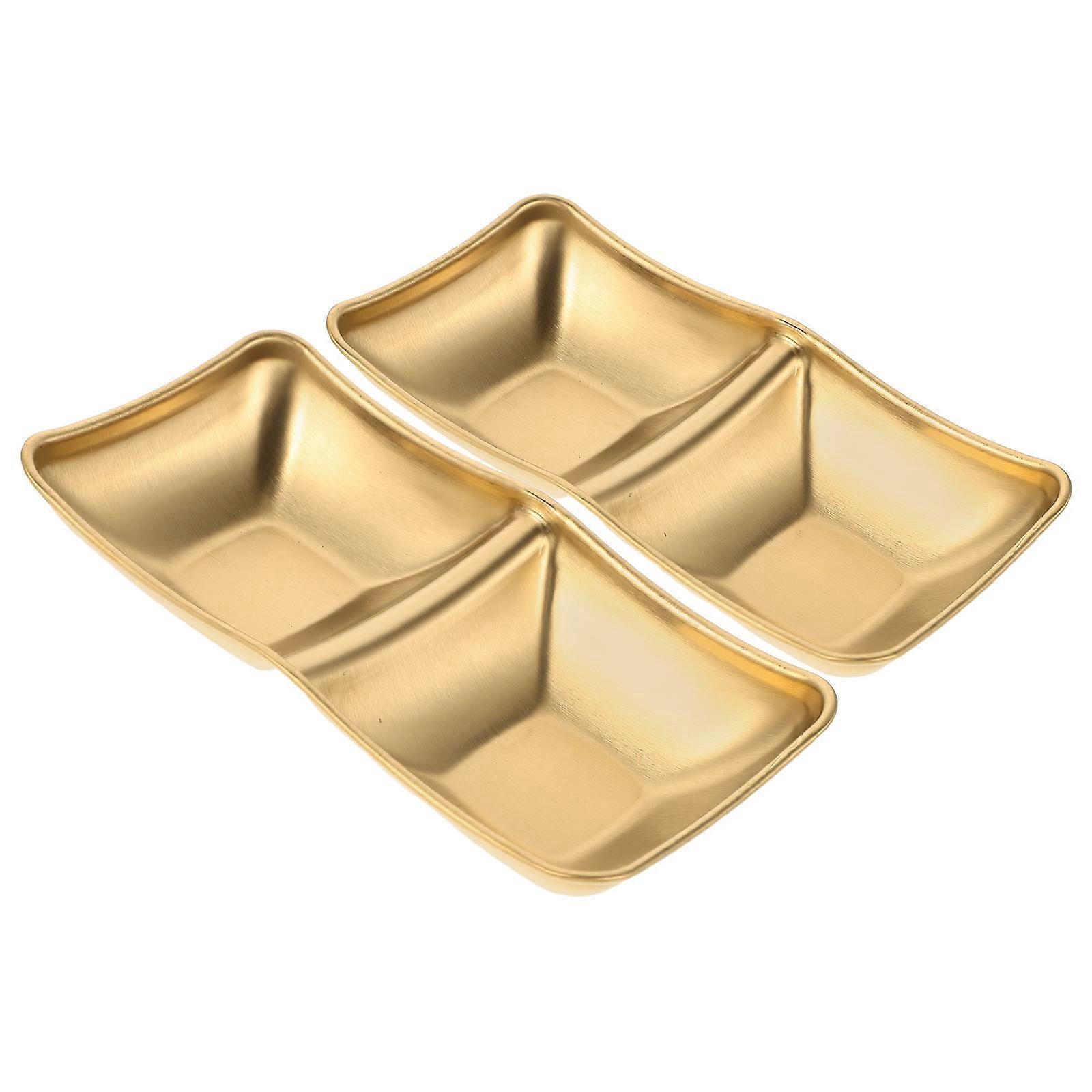 Elegant Golden Stainless Steel Dipping Sauce Dish Bowl Set for Kitchen Use Dual Compartment 2pcs
