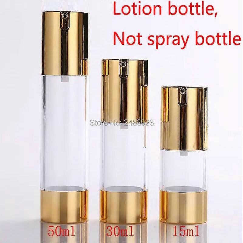 10pcs/lot Gold 15ml 30ml 50ml Airless Pump with Clear Body Bottle By Self Empty Recomable Refillable Diy Skin Care Creations