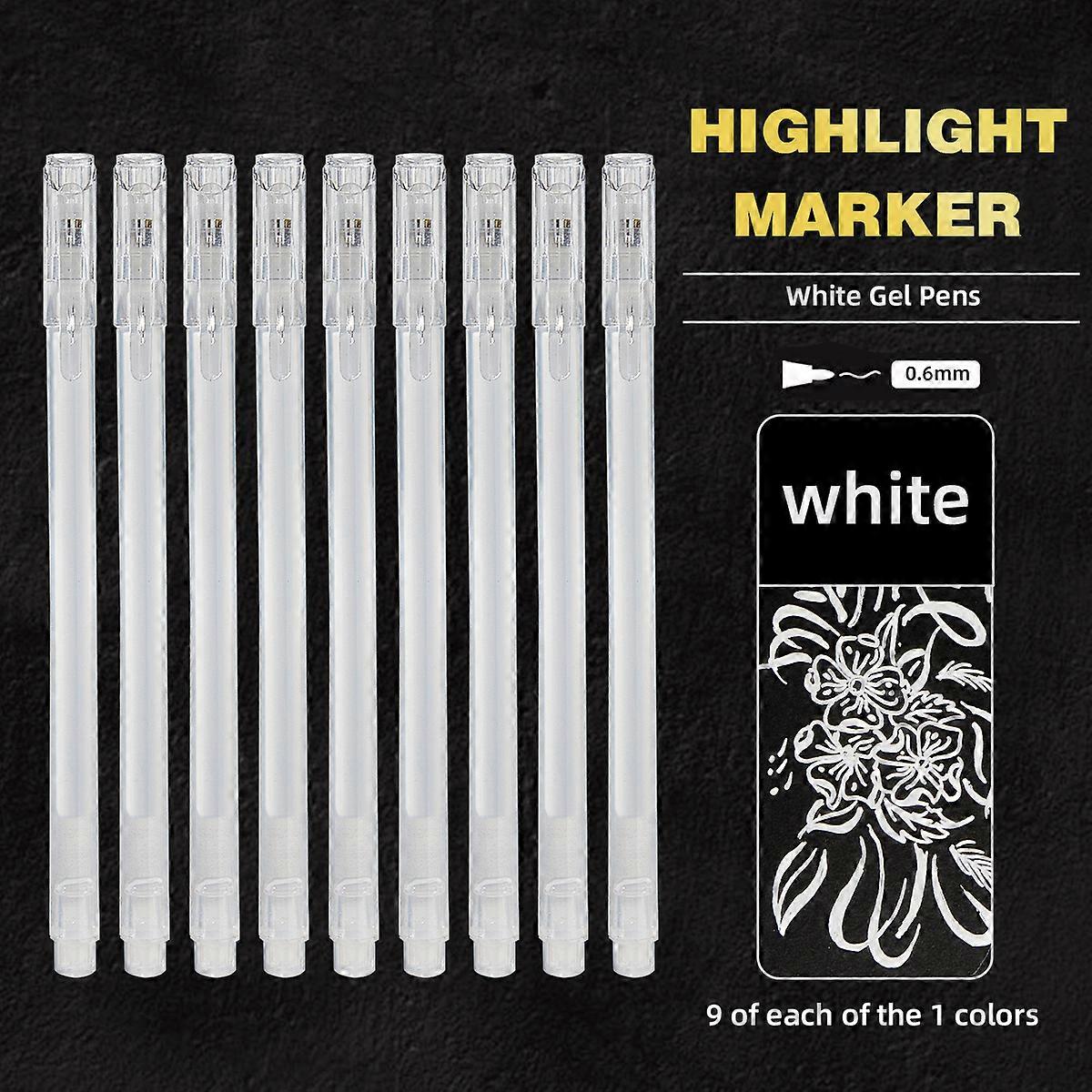 SHANDS 9pcs White Highlighter Gel Pen,Sketching Marker Gel Pen For Artists/Black Papers,Drawing Design Illustration Art Supplies