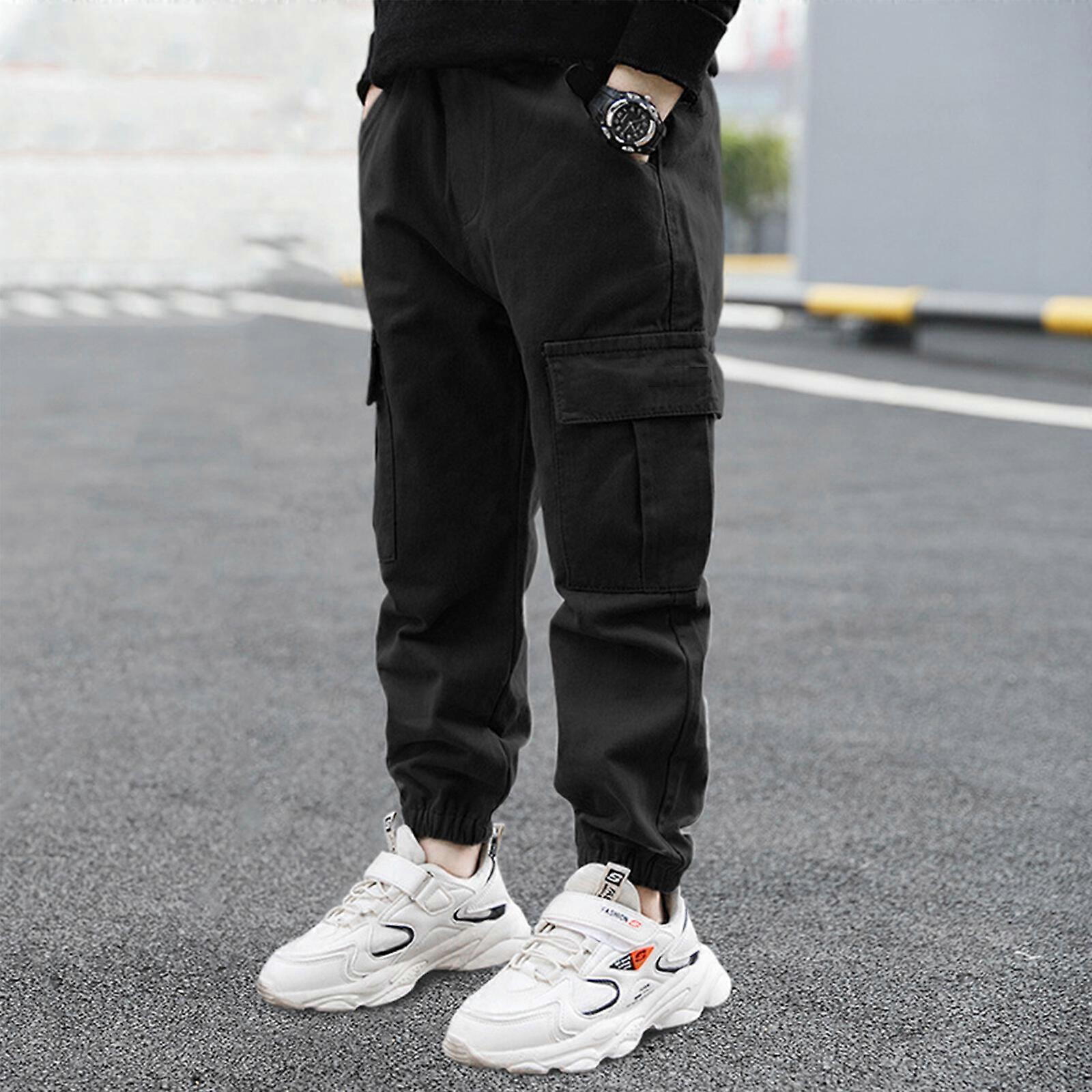 Kids Boys' Cotton Cargo Jogger Pants with Pockets Athletic Sports Sweatpants