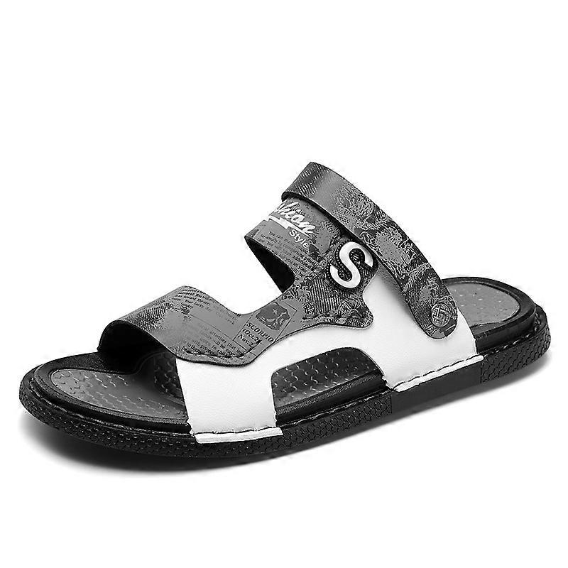 Trendy preppy style men's hand-stitched breathable sandals, white beach shoes