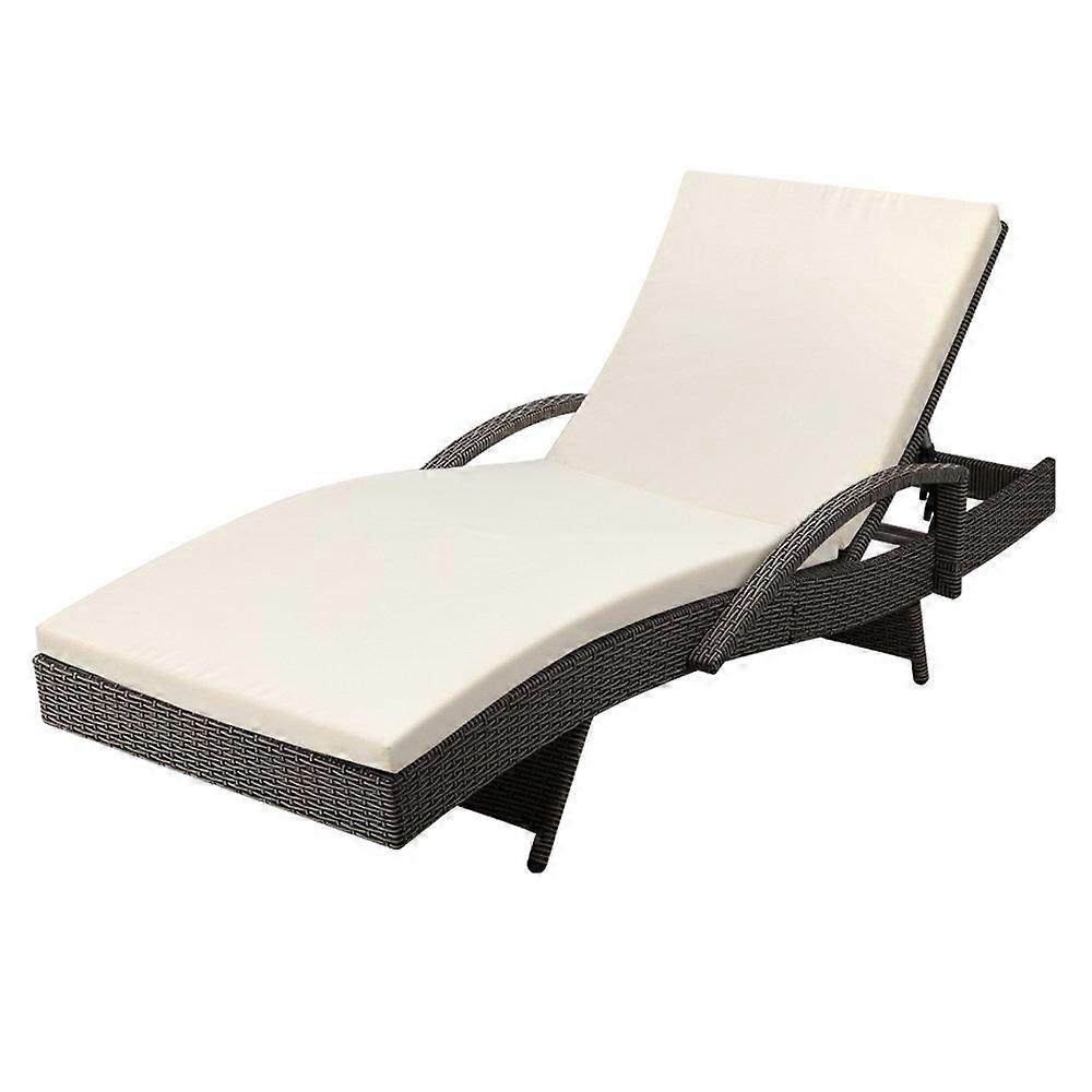 Gardeon Sun Lounge Wicker Lounger Outdoor Furniture Beach Chair Patio Adjustable Cushion Grey&Beige Loungers