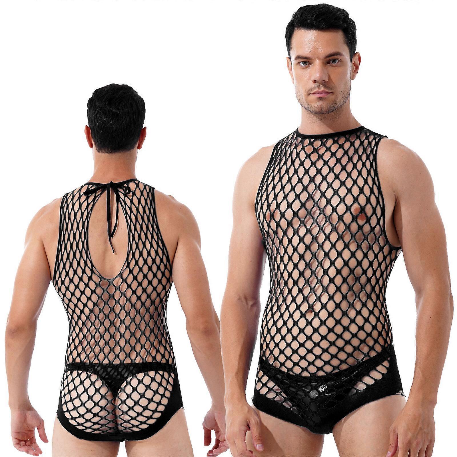 Men's Fishnet See Through Bodysuits Muscle Stretchy Leotard Nightwear Tops