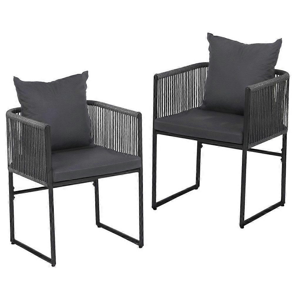 Introducing The Gardeon Contemporary Outdoor Chairs Designed To Seamlessly Blend Durability And Style For Both Indoor And Outdoor Use. Crafted With A Sturdy Powder-Coated Steel Frame These Chairs Offer Long-Lasting Support While The Uv-Resistant Weatherproof Hand-Woven Rope Provides A Comfortable And Cocooned Seat. The Non-Slip Feet Ensure Stability On Various Surfaces And The Removable Machine-Washable Cushions Make For Easy Maintenance. These Minimalist Chairs Are Perfect For Pairing With Bistro Sets Or Dining Tables Adding A Touch Of Modern Elegance To Any Space. Whether For Your Patio Garden Or Indoor Lounging Gardeon Chairs Provide Robust Construction And Timeless Design For Year-Round Comfort.