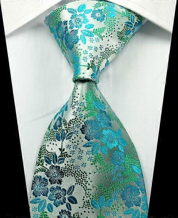 Hot Classic Floral Turquoise Green JACQUARD WOVEN 100% Silk Men's Tie Necktie