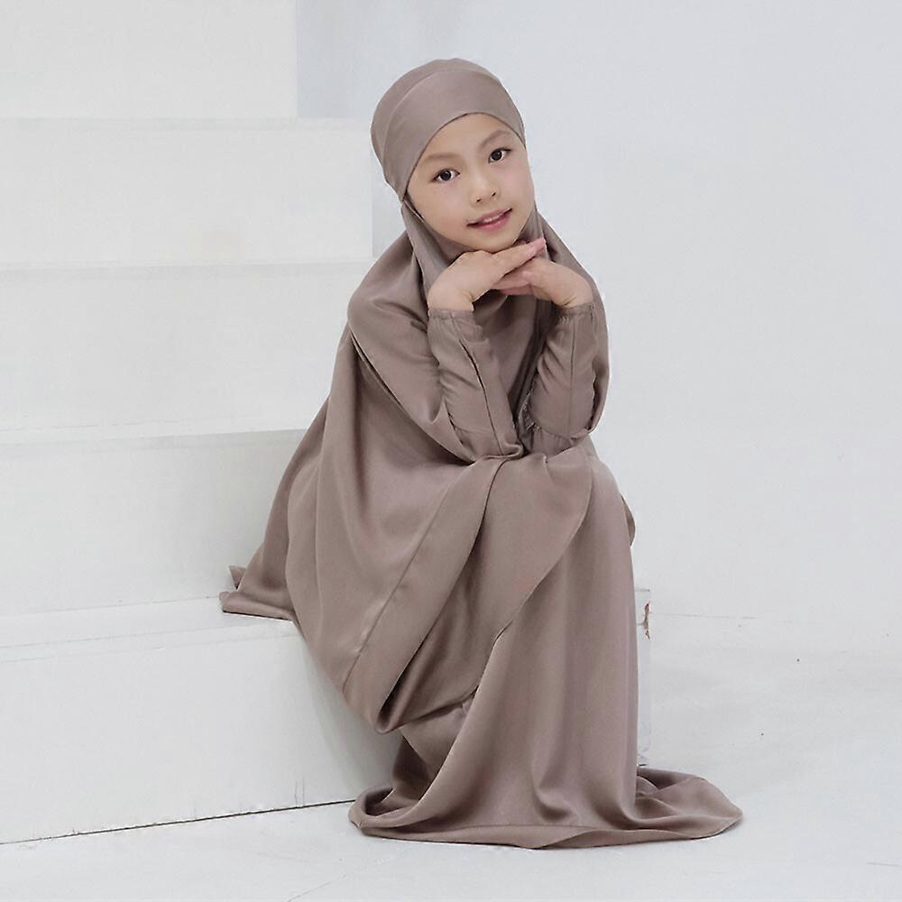 Ramadan Overhead Hijab Khimar Kids Girls Prayer Dress Set Muslim Abaya Dress
