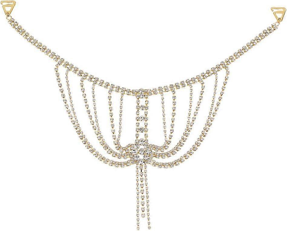 2Pcs Gold Body Shoulder Chain Layered Tassels Shoulder Chain Multilayered Gold Tassels Link Boho Rhinestone Sexy Bra Body Chain Fringe Tassels Bikini