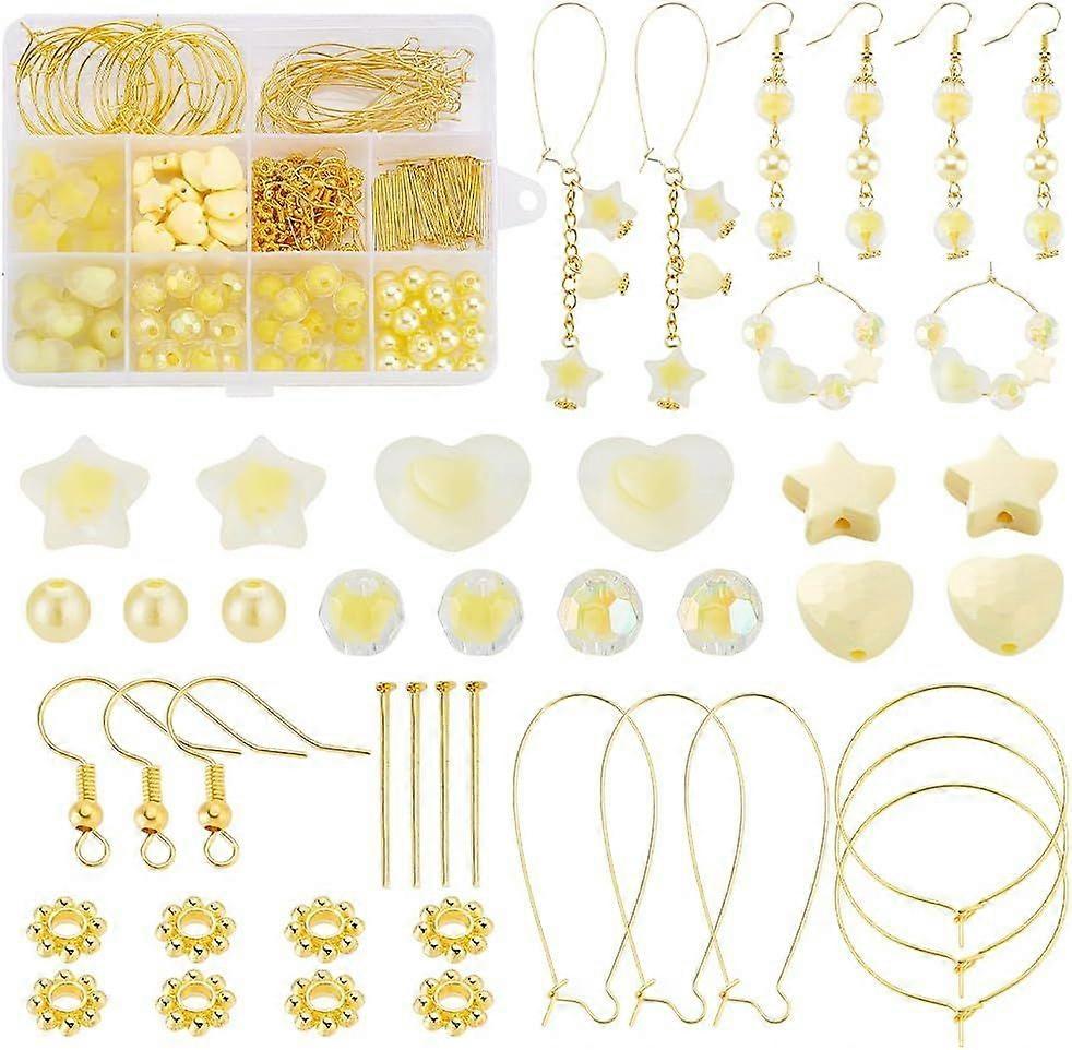 247pcs Earring Making Kit Yellow Stars Heart Beads Earring Hoops Earrings Hooks Set Cute Acrylic Beads Spacers for Jewelry Making Necklace Bracelet Be