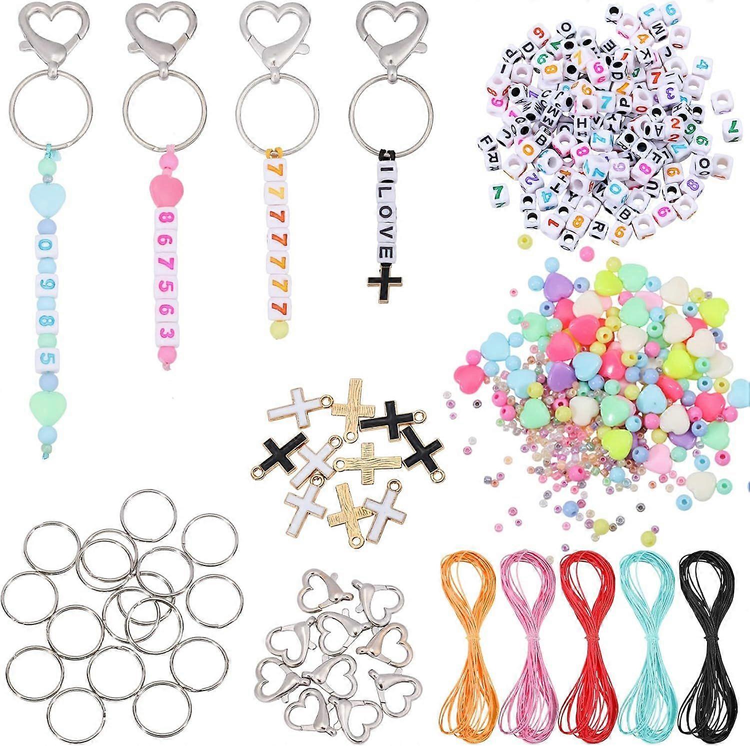 560 Pcs Acrylic Beads Keychain Crafts Kit Acrylic Beads Keychain Making Kit Letter Beads Keychain Kit Heart Shape Bead for Keychain Bagchain Jewelry D
