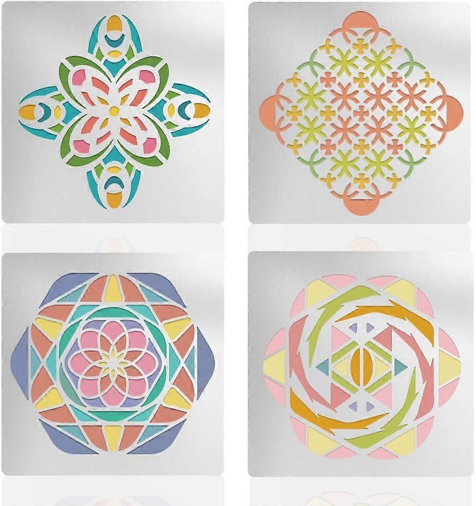 4Pcs 4 Styles Metal Stencil for Painting Stainless Steel Reusable Template Flower of Life Template for DIY Scrapbooking Drawing Carving Engraving