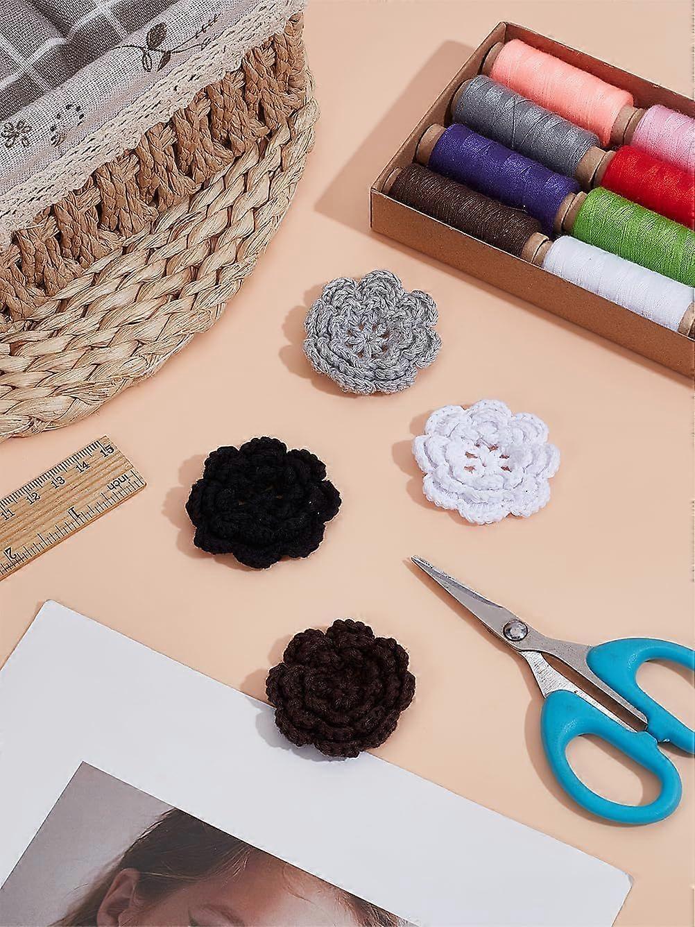 4Pcs Cotton Flower Patches Mixed Color Sew On/Iron On Patch Applique Hand-Woven Cotton Ornament Accessories for Clothes Backpacks Dress Hat Jeans DIY