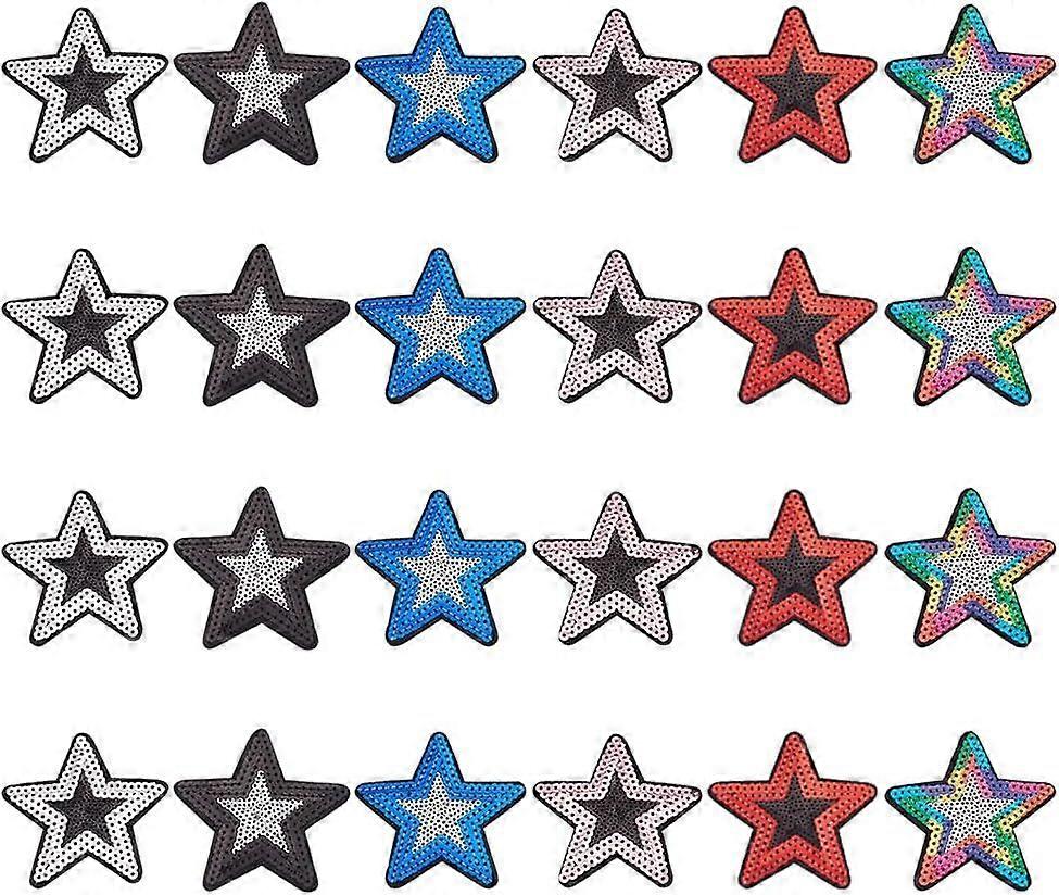24Pcs 6 Colors Stars Iron on Patch Star Embroidered Patch Iron on Sew on Star Patches Twinkling Star Ironing Sewing Patch DIY Patch for Clothing Jeans