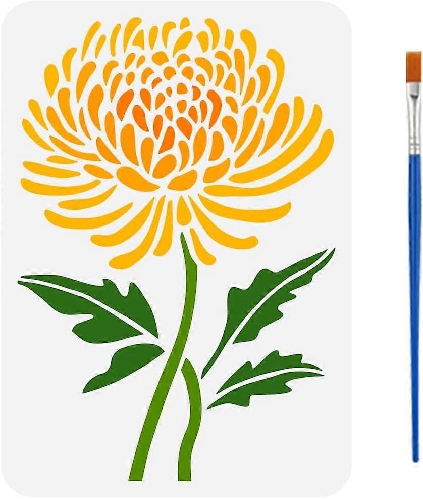 Chrysanthemums Stencil with Brush 8.3x11.7inch Reusable Flower Patterns Template Plastic PET Flower Leaves Stencil Hollowed Plant Theme Template for P
