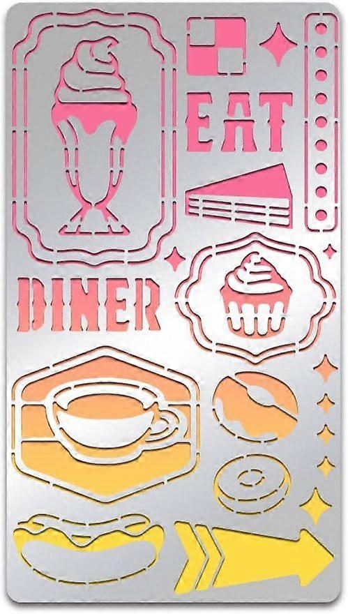 Food Pattern Stainless Steel Metal Stencils 7x4inch Ice Cream Doughnuts Cupcakes Pattern Painting Template Journal Tool for Wood Burning Pyrography En