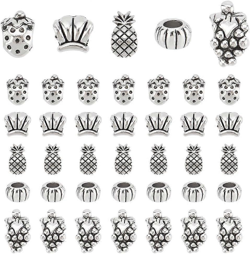 150pcs Silver Fruit Beads 5 Styles Tibetan Styles Beads Pineapple Spacer Beads Strawberry Loose Beads Rondelle European Beads with 4-5mm Hole for Jewe