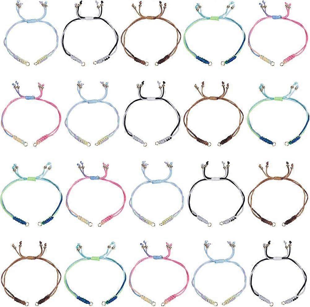 20Pcs 5 Colors Adjustable Nylon Bracelets Cord Bracelet Thread Link Rope Twist Cord Beaded Chain with Gold Open Jump Rings for Jewelry Making Friendsh
