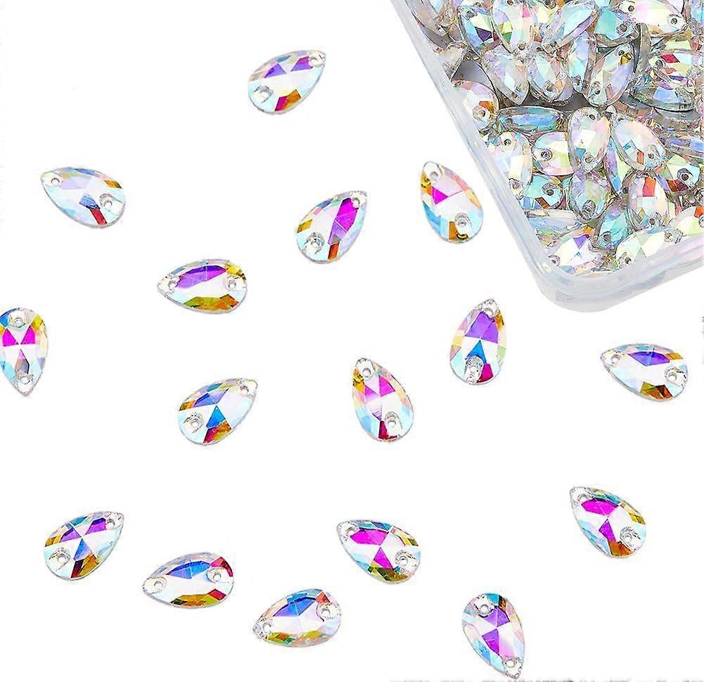 Teardrop AB Color Design: The gems are designed drop shape with faceted style. Under the sunshine and light these sew on crystals will emit a charming glitter and colors will change based on different angle. Material: The rhinestones are made of materials durable and wear-resistant selected glass rhinestones and accurate multi-faceted cutting let each glass gem shine like real rhinestones. and will not fade or break. Easy to Use: Each of these sewing gems comes with two sewing holes and the back is a flat back rhinestone design which meets the needs of sewing and glue at the same time which is convenient for manual or machine sewing helping you to fix the rhinestones for clothes or other materials easily. 150PCS: You will receive 150pcs rhinestone and the size is 7mm wide 12mm long and 3.5mm thick the hole is 1mm. Wide Application: The sew on rhinestones provide a shiny luster perfect for sew on or glue on clothes dresses gowns bags shoes jeans necklaces and other DIY gems craft projects. whether it is daily wear or special occasions sew on crystals will add a unique charm to your work.