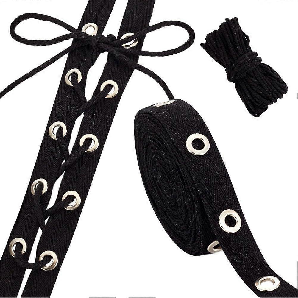 5 Yards Eyelet Grommet Tape 0.8 Inch Wide Black Grommet Tape with Steel Eyelets Ring Trim with 1M Cotton Threads for Sewing Garment Corset Shirt Dress