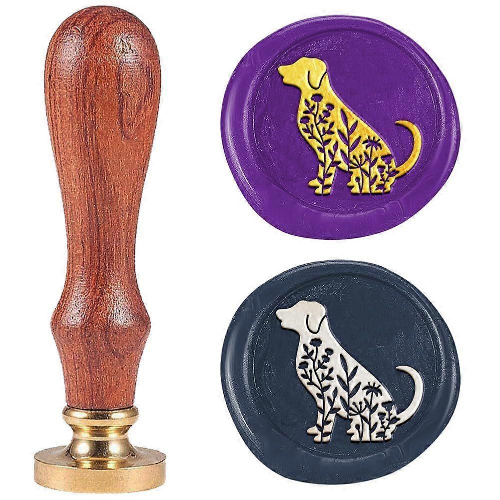 Wildflowers Dog Wax Seal Stamp 1" Vintage Animals Sealing Stamps Removable Brass Head Seal Stamp with Wooden Handle for Animal Lover Envelope Greeting