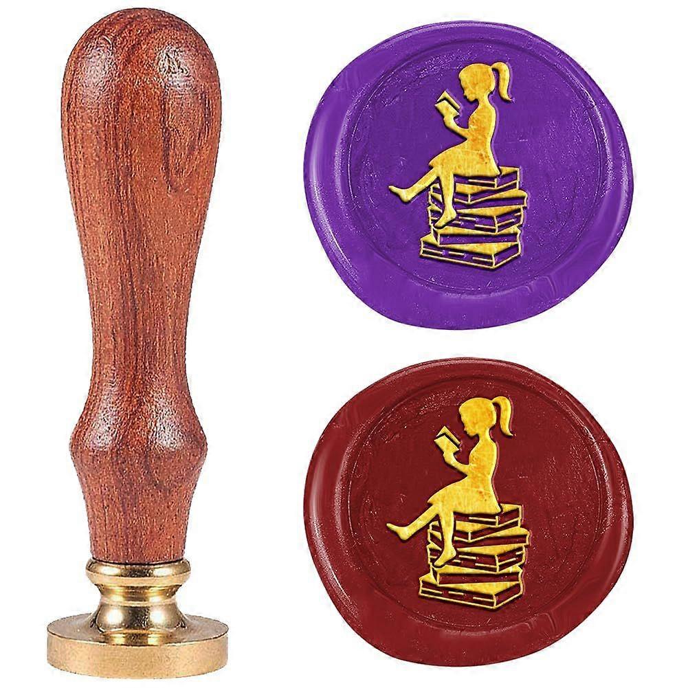 Wax Seal Stamp Reading Books Wax Stamps 25mm/1inch Removable Brass Sealing Stamp Head with Wooden Handle Retro Wax Sealing Stamp for Gift Wrap Envelop