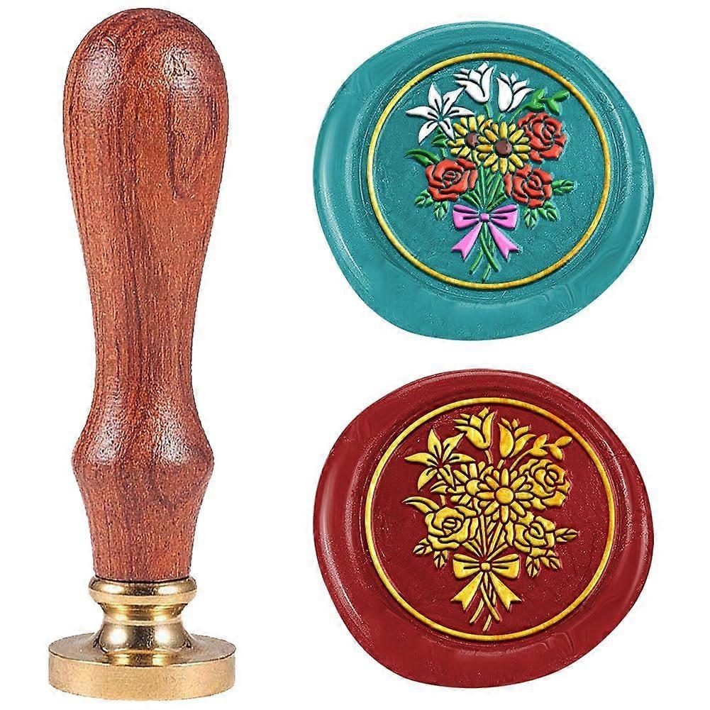 Bouquet Wax Seal Stamp Removable 1" Brass Sealing Wax Stamp Head with Wooden Handle Embossed Stamp for Valentine's Day Envelope Greeting Card Letter W