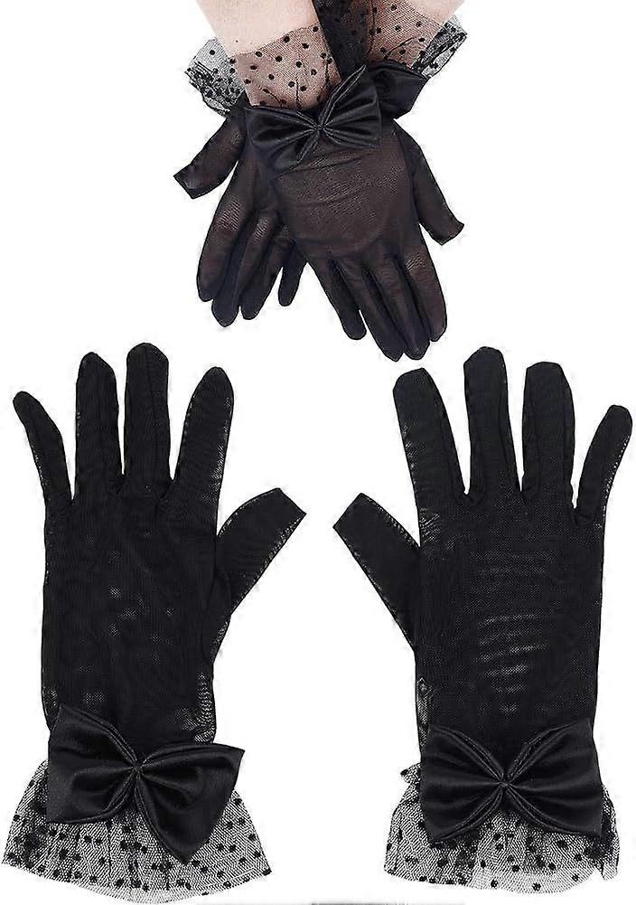 2 Pairs Lace Gloves Short Prom Gloves Tea Party Gloves Elegant Bridal Gloves for Wedding Dinner Dress Party