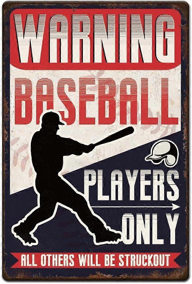 1pc Baseball Players Metal Signs 8x12 inch Vintage Metal Tin Signs Warning Baseball Players Only Funny Tin Poster for Boys Room Home Office Bar Cafe M