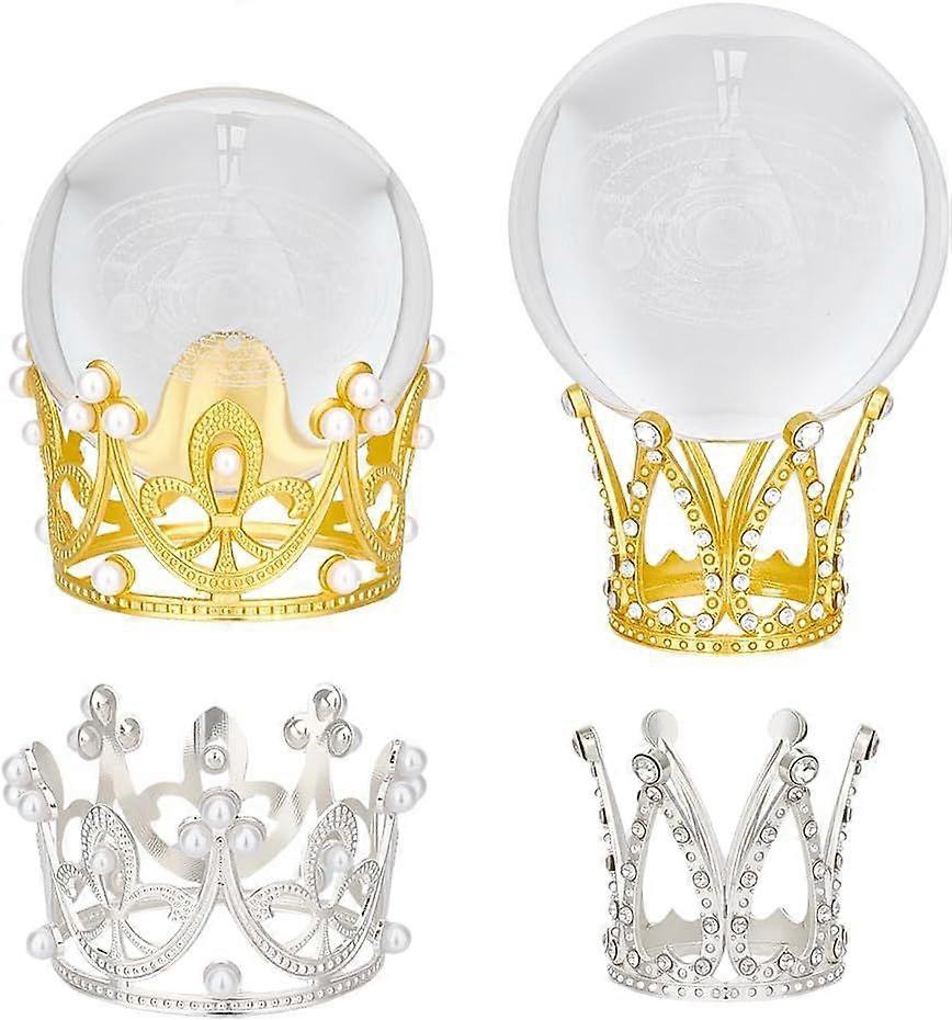 4Pcs 2 Styles Ball Stands Alloy Sphere Stands Globe Stone Holder Mini Crowns Holders Cake Topper for Egg Sphere Ball Birthday Wedding Party Decor-Silv
