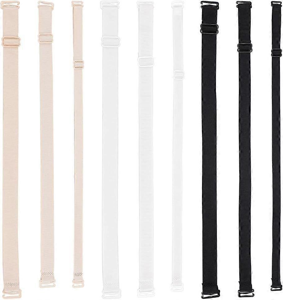 9 Pairs 3 Colors Polyester Bra Straps 10mm 14mm 17mm Adjustable Bra Shoulder Strap Replacement Multi Color Convertible Bra Straps for Women Bra Replac
