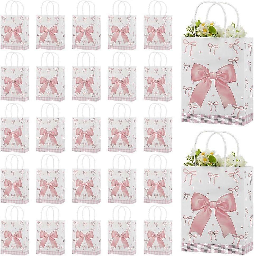 30 Pcs White Gift Bags Pink Birthday Party Paper Favor Bags with Handles for Mother's Day Valentine's Day Bridal Engagement Party Wedding