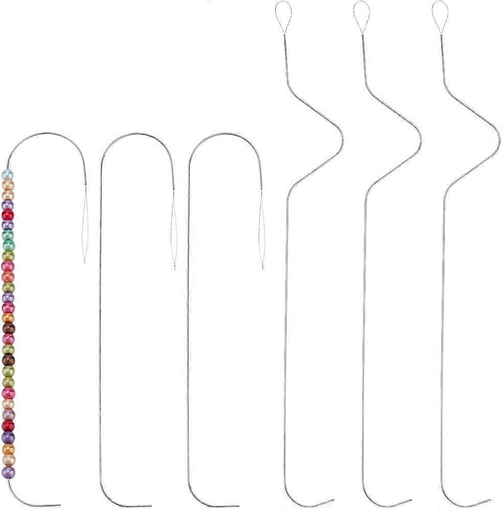 6Pcs 2 Styles Big Eye Curved Beading Needles 5.2 Inch 0.5mm/7.3 Inch 0.6mm Stainless Steel Iron Beading Spinner Needle for Seed Bead Spinner Jewelry M