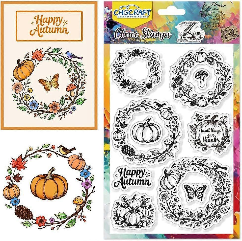 Wreath Theme: Elements of the clear stamp include a variety of wreath pumpkins pinecone flowers butterflies and mushroom designs. The patterns look elegant fantastical and full of vivid. Great for decorating your envelope postcard scrapbook diary and holiday cards Material and Size: Clear stamp is made of high quality silicone material easy to clean and resistant. The size is 4.3x6.3 inch/110x160mm Reusable and Washable: Silicone stamps easy to use and clean can be used repeatedly after cleaning or washing with water. It is not easy to break or deform so you can use it for a long time Easy to Use: Simply put the stamp on an acrylic block (not included in the package) and dip in ink then stamp to the paper or card then let them air-dry finally an exquisite work is accomplished Wide Application: Silicone clear stamp makes your crafts full of festive spirit. Great for greeting cards calendars gift wrap decorations scrapbook pages DIY photo albums home decor and more