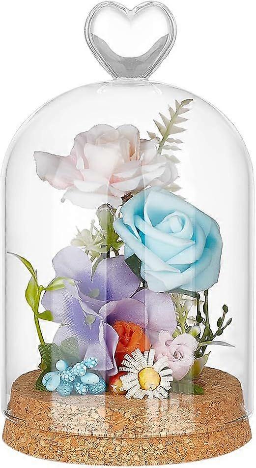 Packaging Dimensions --Dimensions of the finished glass display dome approx 19.5x9.1cm/7.6x3.6 inch arch glass cloche dome cover approx 18.1x9cm/7.1x3.5 inch cork wood base approx 9.1x1.9cm/3.6x0.7 inch Graceful Design --The elegant curved glass heart top design is suitable for any artwork and plants perfect for desks shelves tables and countertops and a great gift for friends and family Premium Material --Made of premium glass and cork wood sturdy and durable not easy to break and fracture and the transparent design makes it easy to view the items inside from different angles Wide Application --Great for displaying your flowers artificial plants candles models collectibles souvenirs etc. for home decoration birthday party anniversary and wedding decoration adding a warm and romantic atmosphere Nice Meaning --Each handcrafted eternal flower is a unique work of art a stunning symbol of lasting friendship beauty and love to amaze the loved ones in your life