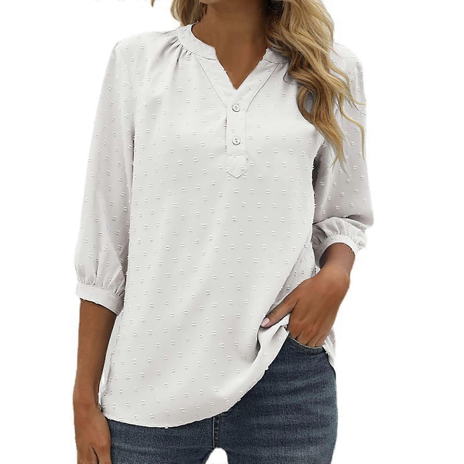 Features: This shirt is made from trendy dot textured fabric that's lightweight and flowy. Features: This shirt features V-neck design, partial button placket, and three-quarter sleeves. It is a formal yet elegant top, suitable for work and casual occasions. Occasion: This, fall and winter shirt is perfect for office, work, vacation, date, party, nightclub, nightlife, casual, back to school, travel, shopping or daily wear. Pair it with: This V-neck top can be worn with trousers, jeans or dresses, cardigans and sneakers for a polished look. Warm reminder: Machine wash and hand wash in cold water,to dry. Please view our size chart before purchasing. Specifications: V-neck dot decoration Middle sleeves Package Includes: 1xfashion shirt note: 1.Please allow 1-2cm errors due to manual measurement, make sure that you do not mind before you order. 2.Due to the difference between different monitors, the picture may not reflect the actual color of the item.