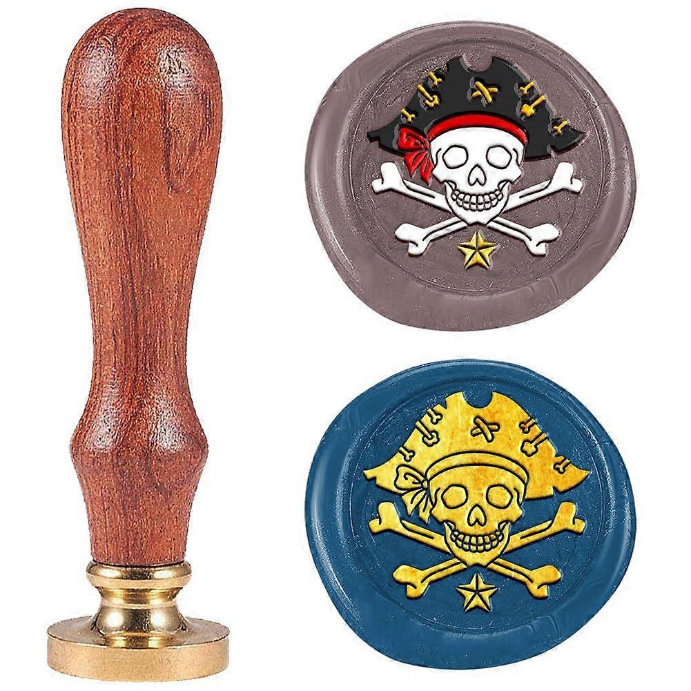 Pirate Wax Seal Stamp 1" Sealing Stamps Removable Brass Head with Wooden Handle Seal Stamp Sealing Wax for Envelope Greeting Card Gift Engagement Part