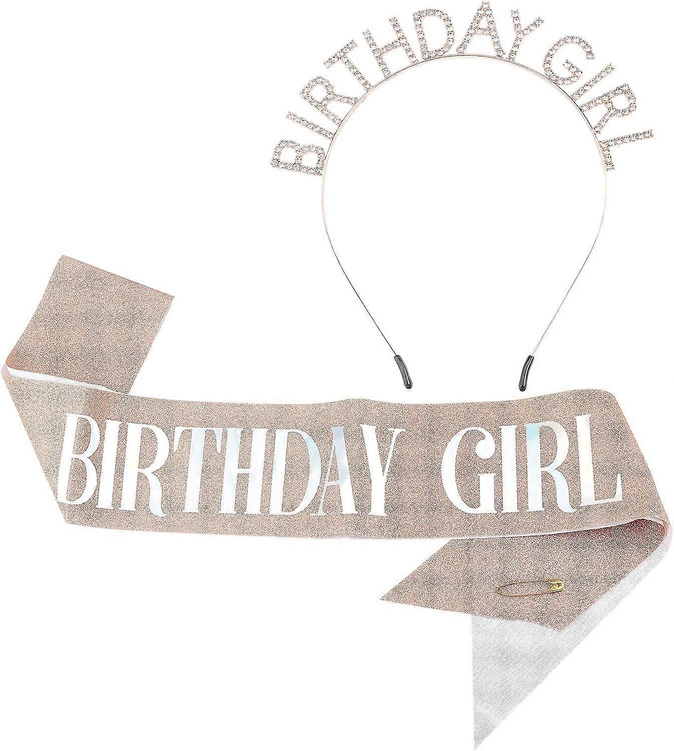Birthday Girl Sash Rhinestone Tiara Set Birthday Gifts Birthday Sash Safetty Pin for Women Fun Party Favors Birthday Party Supplies(Gold Glitter with
