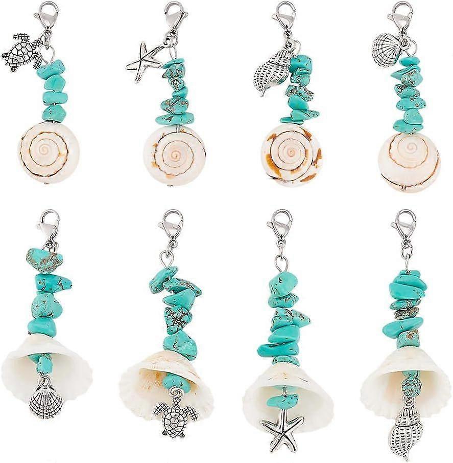 16 Pcs Key Chain Charms Natural Shell and Turquoise Chip Pendants European Dangle Charms for Women Ladies for Handbag Purse Backpack Pendant Charms De