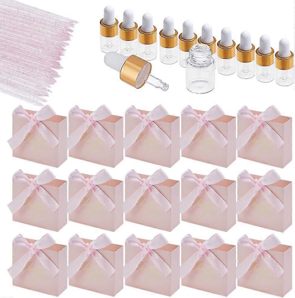 36 Pack Mini Pink Thank You Gift Bags Clear Glass Oil Dropper Vail 2ml(0.07fl. oz) 36Pcs Nail Stick Cuticle Pusher for Travel Wedding Party Birthday C