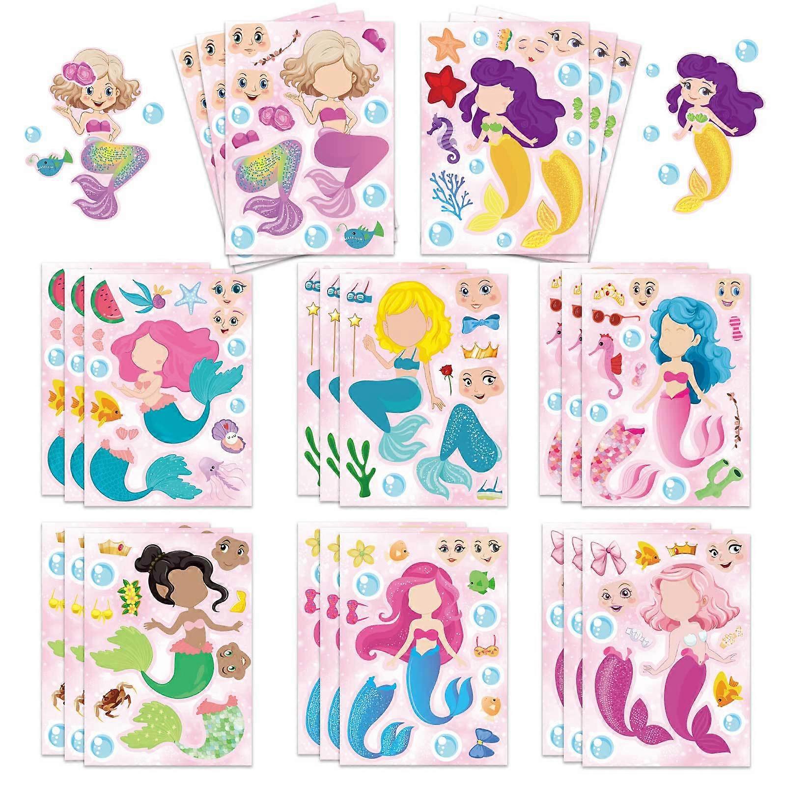 8Sheets Make Your Own Mermaid Stickers Children DIY Puzzle Sticker Games Cartoon Make A Face Girl Assemble Jigsaw Stickers Kids